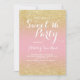 Une douche à parties scintillant moderne, joliment fausse or sombre avec bloc de couleur rose Sweet 16 anniversaire invitation avec motif d'ombre dorée s'estompant sur un arrière - plan rose. Parfait pour un Sweet sixteen princesse.