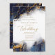 Un arrière - plan abstrait qui évoque le marbre dans les tons bleu marine veiné d'or brillant est la toile de fond de textes élégants et de mises en page design moderne dans les pièces de cette belle suite mariage. Le faire-part de mariage ci-dessus contient le texte de script courant optionnel de "mariage" et un modèle pour ajouter vos détails mariages pertinents. Recherchez ID644 pour voir toutes les pièces de coordination de cet ensemble.