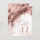 Un arrière - plan abstrait qui évoque le marbre dans les tons de rose pâle à travers le taupe et veiné avec de l'or rose scintillant est la toile de fond de textes élégants et de mises en page design moderne dans les pièces de cette belle suite mariage. La carte de numéro de table mariage montrée ici contient le texte de script courant ci-dessus plus optionnel de Table' et un modèle pour ajouter le nom de la mariée et du marié et la date du mariage. Recherchez ID644 pour voir toutes les pièces de coordination de cet ensemble.