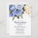 Elégante invitation à la fête d'anniversaire Quinceañera rose bleue avec parties scintillant d'or, bokeh, et lampes à cordes.
