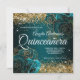 Une élégante invitation à fêter le 15e anniversaire d'une étape monogrammée. Vous pouvez facilement adapter l'année d'âge pour d'autres anniversaires ou événements spéciaux. Parties scintillant scintillante et étincelante aqua turquoise glam rose contre une image graphique sombre turquoise et bleu océan. On peut customiser le chic monogramme de calligraphie florissante classique sur le dos. Invitations de fête d'anniversaire de Quinceañera pour votre fille. Tous les éléments de parties scintillant de ce dégradé moderne sont des graphismes numériques qui impriment à plat avec des encres comme s'il s'agissait d'une photo. Ce sont de belles images de haute qualité, mais aucune parties scintillant réelle n'est utilisée sur les invitations.
