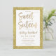 Glam or feuille de parties scintillant cadre rose pâle Sweet 16 anniversaire invitation à la fête avec typographie de script de brosse avec élégante calligraphie. Les couleurs blanches et roses rousses sont entièrement personnalisables.