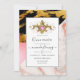 Gold, rose, or rose et noir faux feuille de marbre quinceanera invitation avec une pierre à gemme monogrammée.