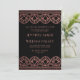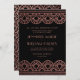 Idéale pour un mariage art déco luxueux et élégant, cette invitation design dispose d'un motif de ventilateurs géométriques d'art déco d'or de style imitation rose et chic sur le noir avec un fond à motif assorti.