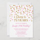 Personnalisé 75e anniversaire invitations de fête dans un motif de confetti parties scintillant rose et or. Ajoutez votre nom et les détails de votre fête pour un accueil unique et élégant à une invitation de fête de 75 ans.