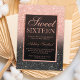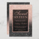 Une douche à parties scintillant en or faux rose moderne, assez chic et élégant ombre parties scintillant noire Sweet 16 anniversaire invitation à la fête avec or rose ombre motif avec et élégant cadre or Parfait pour un Sweet sixteen princesse.