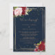 Cette parties scintillant en or géométrique et cette carte de réception en elopement rouge sont parfaites pour une soirée post-elopement rustique. Le design artistique bordo marsala présente des roses d'aquarelle, verts, roses, bordeaux et roux assortis de verdure soigneusement disposés autour de cadres d'or géométriques dans un bouquet de fleurs gracieux et radieux. Les cartes RSVP sont vendues séparément.