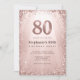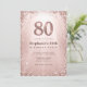 Célébrez en style avec cette invitation glamour de 80e anniversaire, parfait pour une fête d'anniversaire d'étape. Doté d'un arrière - plan en or rose métallique avec un effet de projecteur sur le numéro étincelant 80, cet invitation brille de parties scintillant et de confettis métalliques qui créent un cadre élégant et festif. Idéal pour des fêtes d'anniversaire sophistiquées, des invitations d'anniversaire de luxe ou une soirée à thème d'or rose, cette invitation est conçue pour séduire les invités et donner le ton pour une fête étincelante.