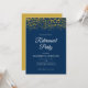 Cette invitation à la retraite comporte des confettis de parties scintillant en or faux sur un arrière - plan bleu foncé et est accent avec un texte de script élégant.