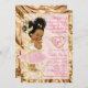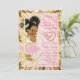 C'est une invitation baby shower moderne et élégant Ribbons and Bows Diamonds and Pearls African American Baby Girl portant la robe de soirée rose vif et or. Cheveux Toneux De Peau Tête : Puffés Afro Curly