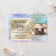 Un magnifique arrière - plan imitation perlé aux tons vifs de rose, violet et bleu aqua forme une toile de fond aux ballons de parties scintillant posés sur le bord d'un arrière - plan à bordure dorée et violette et à un cadre photo qui peut être personnalisé pour votre occasion. Ces fabuleuses invitations sont idéales pour toute fête d'anniversaire de naissance de petite fille ou de diva que vous pouvez accueillir ou célébrer pour votre patron, mère, soeur, fille, nièce, petite-fille ou fillette.
