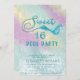 Adorable glittery mermaid tail holographic Sweet 16 invitation.