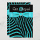Ajoutez du glamour et du glamour à votre Bat mitzvah ou fête d'anniversaire avec cette parties scintillant FAUX (IMPRITÉE) zébrée en bleu aqua, noir et blanc (IMPRIMÉE), avec un ruban en satin bleu turquoise IMPRIMÉ et un broch en diamant et en bijoux IMPRIMÉ. Si vous avez besoin d'éléments correspondants dans cette conception, ou si vous avez besoin d'aide pour customiser vos informations, veuillez envoyer un courriel à niteowlstudio@gmail.com. ****VEUILLEZ NOTER que tout sera imprimé tel qu'il apparaîtra sur votre écran. Je ne verrai pas votre invitation une fois que vous l'avez commandé et Zazzle ne modifiera rien.