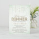 Ce design d'invitation à dîner de répétition design par The Spotted Olive™ présente un arrière - plan doux avec une image de gemmes en streaming descendant du haut et le mot "dîner" rempli d'une image de parties scintillant en or. VEUILLEZ NOTER : CETTE CONCEPTION NE COMPORTE QU'UNE IMAGE IMPRIMÉE DE PARTIES SCINTILLANT ; IL N'Y A PAS DE PARTIES SCINTILLANT PHYSIQUE UTILISÉE OU INCLUSE ; IL N'Y A PAS D'EMBELLISSEMENTS. IL S'AGIT D'UNE INVITATION IMPRIMÉE À PLAT. Copyright 2014-Present | L'Olive tacheté™ | Tous droits réservés