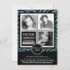 Un arrière - plan coriace avec une apparence de parties scintillant zèbre met en valeur votre grand étudiant! Cette invitation à la remise des diplômes a un effet parties scintillant mignon dans une belle couleur turquoise ou bleu aqua pour vraiment ajouter de la pizza. Téléchargez vos trois photos préférées de votre étudiant diplômé et de votre poste pour les intégrer dans les boîtes. Personnalisez ensuite les champs de texte avec votre élève de diplôme, la classe de 201X année, l'école secondaire ou postsecondaire, et les informations sur les fêtes.Cette conception présente des lignes de quadrillage grises avec des bordures de texte et de photo blanches, ainsi qu'une zone de carré en cube noir pour le nom et le titre de l'étudiant diplômé. La partie inférieure est un noir avec du texte blanc facile à lire pour votre classe d'année, l'école, la fête ou la cérémonie, l'adresse et les coordonnées. Il est parfait avec les portraits en noir et blanc ou en couleurs vives.