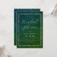 Un modèle simple, moderne, élégant, formel et classe d'invitation à la douche nuptiale avec un arrière - plan texturé vert émeraude, un cadre de diamants blancs (simulé, pas de vrais diamants !), script de calligraphie moderne et typographie en blanc. Un design chic et intemporel qui allie un design mariage traditionnel et formel à une calligraphie de script moderne et à une mise en page tendance.