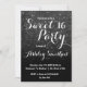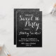 Une jolie douche à parties scintillant noire, moderne et imitation noir sombre avec élégant bloc de couleur noire Sweet 16 anniversaire invitation à la fête avec parties scintillant noire ombre motif s'estompant sur un arrière - plan rose. Parfait pour un Sweet sixteen princesse, parfait pour elle, la fashionista qui aime motif moderne et glam