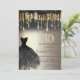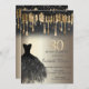 Elégante parties scintillant noire et or gouttes, et robe noire sur un arrière - plan or. Parfait pour une célébration anniversaire féminine élégante. Personnalisez avec vos propres détails.