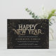 Parties scintillant dorée noire effet élégant haut de gamme Nouvel An invitation de fête. Texte de script moderne design monochrome. Partie d'une collection.