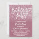 Cette invitation à la bachelorette élégante et mariage est parfaite pour une femme élégante et branchée. Il représente une parties scintillant rose brillant imitant et un gradient d'ombre de arrière - plan rose cassis sur le devant avec une typographie de script de brosse blanche personnalisée. Sur le dos, on retrouve le rose mauve et l'ombre d'argent éblouissante. C'est élégant, chic, moderne, glamour et joli !