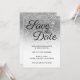 Photographie en faux parties scintillant gris argenté et recouvert d'ombre blanche pour votre mariage sauvegardez les informations sur la date. La police décorative noire "Save the Date" est un élégant style calligraphique contemporain. Les informations sur le nom et l'événement s'affichent dans un style de police plus classique. Un mariage en dégradé blanc et en verre argenté avec dégradé de parties scintillant sauve la date. La photo de la parties scintillant est floue. Faux parties scintillant enregistrer les dates.