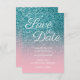 Photo de parties scintillant turquoise et recouvert d'ombre rose pâle pour votre mariage enregistrer les informations de date. Le texte décoratif Save the Date est un joli style calligraphie contemporain en blanc. Faux parties scintillant ombre mariage enregistrer la date. La parties scintillant à l'ombre est un effet photo imprimé.