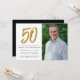Célébrez 50 ans avec cette invitation à la parties scintillant blanche, noire et faux or avec une grande stylisée 50 ainsi qu'une photo de l'invité ou des invités d'honneur. Cela fonctionne bien pour un 50e anniversaire ou une fête du 50e anniversaire.