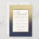 Une parties scintillant en faux or moderne, assez chic et élégante ombre bleu marine Sweet sixteen invitation avec or avec et élégant cadre or Parfait pour une princesse Sweet 16, parfait pour elle, la fashionista qui aime le motif moderne et glam