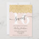Invitation Parties scintillant or gouttes photo pastel rose c