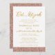 Parties scintillant d'or rose moderne et tendance et fausse feuille d'or Bat mitzvah invitation avec espace pour un Nom hébreu. L'oeuvre est faite d'images imprimées à plat, PAS de parties scintillant réelle ou de feuille d'or. Consultez la boutique Paper Grape Zazzle pour la coordination des articles de papeterie et de fête pour compléter votre thème Bat mitzvah élégant.