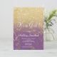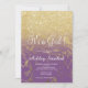 Une parties scintillant d'or original, moderne et sobre d'ombre marbre C'est une fille baby shower invitation sur une couleur violette arrière - plan