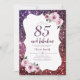 Burgundy violet faux brillant parties scintillant arrière - plan et rose floral avec "85 et fabuleux" script au centre, élégante et élégante, grande étape 85e anniversaire invitations de fête. Papier fini semi-brillant sélectionné.