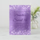 Créez votre propre invitation à célébrer le 16e anniversaire pour votre fille. Des graphiques en parties scintillant violettes brillantes et brillantes forment une bordure supérieure et inférieure. L'art numérique arrière - plan présente une feuille de métal brossé à l'ombre violette brillante en lavande. Customisez la couleur de texte ou les styles de police violets foncés de l'invitation. Le texte "Sweet 16" est également personnalisable. Les scintillants de luxe, la parties scintillant et la feuille seront créés avec des éléments artistiques qui s'impriment comme une photo.