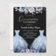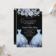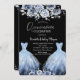 Elégante robe de parties scintillant bleue et fleurs sur un arrière - plan noir.