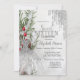 Robe argentée élégante, gouttes de parties scintillant argentée et branches de pins avec baies sur la neige. Entrez vos propres informations ou customisez-les pour supprimer tout élément que vous désirez. Idéal pour un événement élégant et saura séduire vos invités.