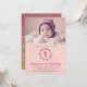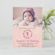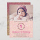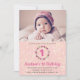 Elégante invitation de fête de 1er anniversaire avec une belle conception de couronne fleurie. Ajoutez simplement les détails de votre événement sur ce modèle facile à utiliser et ornez cette carte avec la photo préférée de votre enfant pour en faire une invitation unique. Retournez la carte pour révéler une texture de parties scintillant rose au dos de la carte.