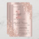 Une invitation moderne, chic et glamour avec des gouttes de parties scintillant et de la tiare argentée sur un arrière - plan or rose.
