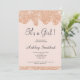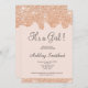 Une parties scintillant d'or faux rose moderne, original et simple gouttes C'est une invitation de baby shower fille sur un arrière - plan de couleur rose pâle entièrement personnalisable