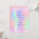 Faites de sa journée spéciale un moment inoubliable avec nos Invitations Dreamy Holographic Anniversaire, conçues spécialement pour une fabuleuse fête de fille ado! Que ce soit pour son 18ème anniversaire ou une année marquante, ces invitations vont certainement impressionner et exciter. Arrière - plan de couleur holographique en violet, rose, vert menthe. Décoré de faux parties scintillant rose vif. Personnalisez et ajoutez un nom et des détails du parti. Le nom est écrit avec un script de style écrit à la main, des lettres de couleur violette. Retour : ajoutez 4 photos et plus de détails.