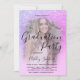 Une douche à parties scintillant violet moderne et jolie rose foncé avec couleur rose bloc de graduation invitation avec votre photo personnalisée avec parties scintillant ombre motif s'estompant sur un arrière - plan rose.