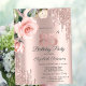 Une parties scintillant d'or rose moderne, chic et glamour, des gouttes d'eau et des roses aquarelles sur un arrière - plan d'or rose.