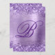 Une élégante invitation monogrammed de 70ème ou 75ème anniversaire 5x7 pour elle. Faux parties scintillant violet avec étincelles contre un motif graphique en feuille de métal brossé faux. On peut customiser le chic monogramme de calligraphie royale violette au centre. Tous les éléments brillants et brillants de ce design moderne girly sont des graphismes numériques. Vous pouvez transférer le design de luxe monogrammé sur le devant à un petit ou moyen cadeau correspondant.