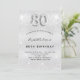Une invitation moderne, élégante et glamour pour une fête de 80e anniversaire. Un arrière - plan faux argenté, décoré de poussière de parties scintillant. Personnalisez et ajoutez votre nom et les détails de votre fête. Le numéro 80 est écrit avec une police de style ballon, script.