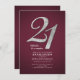 Carte postale Parties scintillant Argent 21st Birthday Party Burgundy Invitation Vous pouvez facilement customiser avec les détails de votre fête en cliquant sur le bouton "Personnaliser". La parties scintillant "21" et l'arrière - plan est définie tandis que vous pouvez facilement modifier les polices, le texte et la disposition en cliquant sur "Modifier à l'aide de l'outil de conception" imbriqué sous le bouton "Personnaliser" pour modifier la couleur, les polices et la disposition arrière - plans.