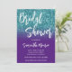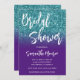 Décor de bloc couleur turquoise et royal violet parties scintillant dégradé pour votre douche nuptiale. La police de script de style "Fête des mariées" de lettrage à la main est une calligraphie contemporaine en blanc. Vous pouvez customiser tout le texte de cette conception. Le graphique de parties scintillant est un art numérique qui imprime comme une photo sur votre invitation moderne.