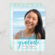 Soyez fier, réjouissez-vous et présentez cette étape de votre carrière préférée ! Envoyez ce script de typographie bleu turquoise brillant, moderne et étincelant contre un arrière - plan rayé bleu turquoise et blanc avec points turquoise et or, invitation photo personnalisée pour un événement à se souvenir. Personnalisez le texte personnalisé avec le nom, l’école et l’année de classe de votre élève. Le texte de l'invitation du lieu de l'événement se trouve à l'arrière. Garantie d'ajouter du plaisir élégant à son occasion spéciale! Sur le devant, tapez simplement le nom de votre diplômée, l’école et l’année de classe, ajoutez sa photo, et vous pouvez facilement personnaliser cette invitation de remise de diplômes. Les informations personnelles de la fête se trouvent au verso de cette carte. S'il vous plaît, envoyez-moi un message avec toute question ou demande.