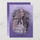 Une douche à parties scintillant ultra violet moderne, jolie imitation violet foncé avec bloc de couleur violet ultra violet doux invitation à la fête de 16 ans avec votre photo personnalisée avec motif violet ombragé sur un arrière - plan violet. Parfait pour un Sweet sixteen princesse.