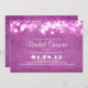 Cette invitation à la douche nuptiale n'est rien de plus qu'étincelante, glamour et étincelante. Décoré avec de la fausse parties scintillant confetti feuille texture arrière - plan et des lampes à cordes violettes brillantes. Invitation romantique glamour pour thème de douche nuptiale vintage mais moderne. Veuillez noter que ce design n'utilise aucune parties scintillant physique, il sera imprimé comme vous le voyez sur l'écran de votre ordinateur.