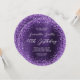 Un 40ème anniversaire glamour avec un design de parties scintillant circulaire faux violet pour s'adapter aux invitations circulaires. La conception comporte une couche de parties scintillant brillante contre une image graphique en métal brun foncé et faux brillant métallique. Les effets scintillants et brillants sont créés avec des oeuvres d'art dans ce design moderne de glamour girly, et imprimera sur votre invitation comme une photo le ferait.