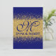 Un faire-part de mariage moderne élégant avec un effet de parties scintillantes d'or sur un arrière - plan riche de bleu royal. Vous pouvez changer le style de police et colorer n'importe quelle manière que vous aimez. Ce fait partie d'une suite assortie de mariage.